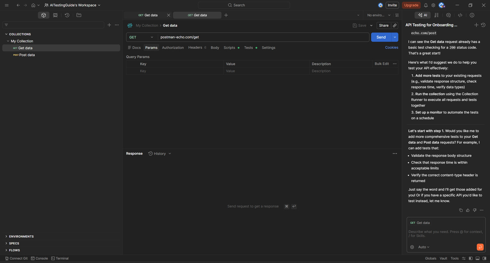 • Postbot AI — generates test assertions automatically